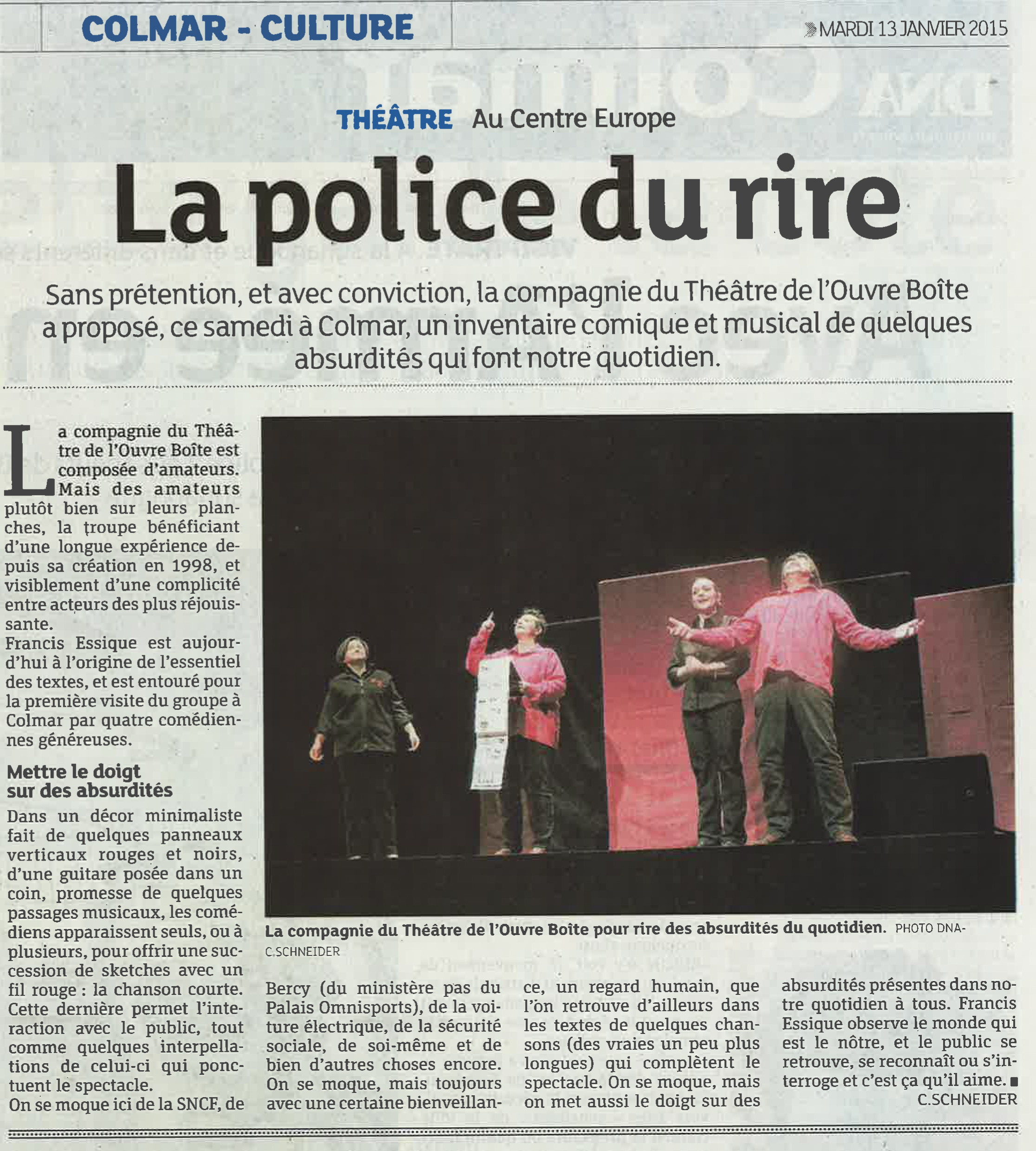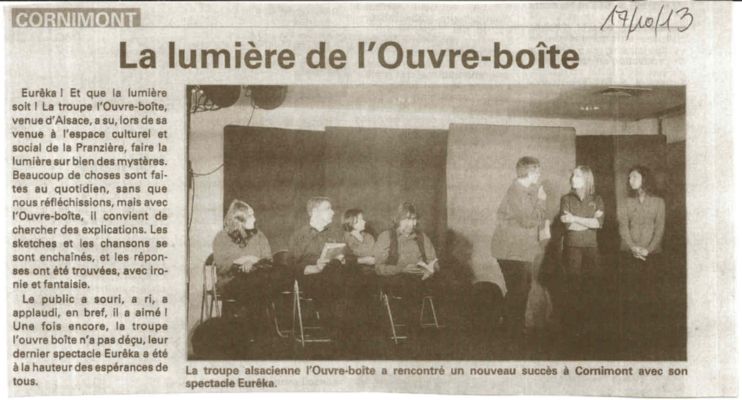 Le spectacle de la saison 2013 - 2014 a su trouver son public et la troupe continue son chemin.
